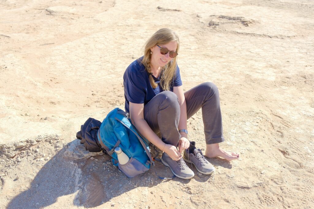 Die weitere Fahrt war wieder pure Sandwüste. Man kann sich das gar nicht vorstellen, weißer Sand pur, links und rechts alle Bäume weiß von dem Sand und teilweise auch weiße Blüten, es war eine Mischung aus Blütenweiß und Sandweiß. Also man sank im Sand ein und beim Herausgehen fühlte sich das an, als ob die Füße festklebten, weil da ein Vakuum entstand.