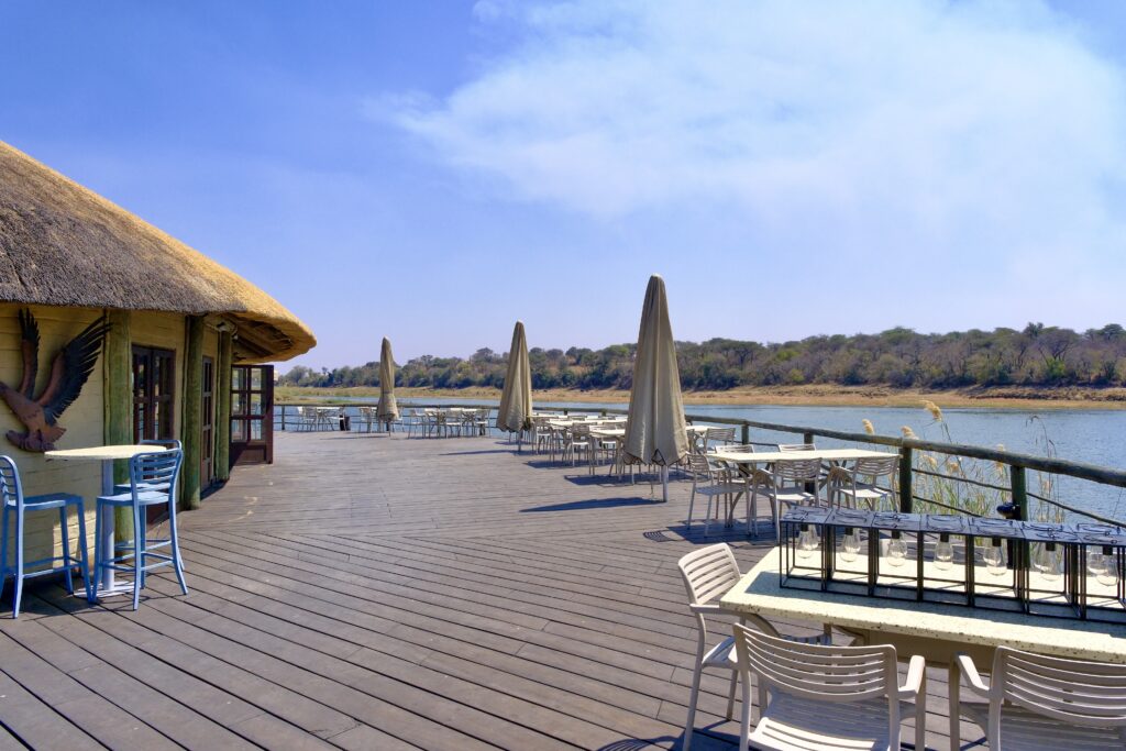 Abends haben wir auf der Terrasse gesessen, von der aus man einen fantastischen Blick auf das Wasserloch hat. Das ganze Gelände ist mit einem kaum sichtbaren Elektrozaun gesichert, so dass man überall sicher war. Nachts sind die verschiedensten Tiere zu beobachten. Wir haben Schakale, Hyänen und Elefanten gesehen. Es gibt diverse Videos, die man auf YouTube aufrufen kann, die z.T. spektakulär sind. Auf dem Video „leopard vs. elephants at Mwandi View waterhole“ sieht man, wie der Elefant verhindert, dass ein Leopard ans Wasserloch kommt. Irgendwann kommt sogar ein Hippo den Elefanten zu Hilfe.