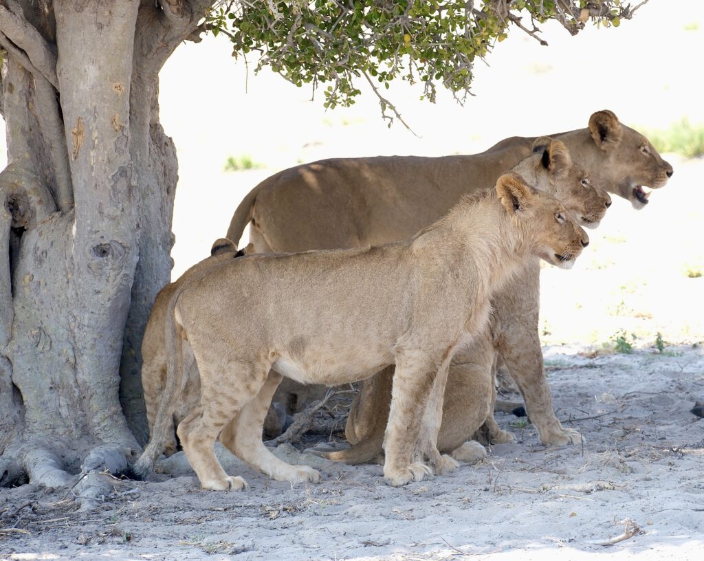 An einem Tag sind wir über das Ngoma-Gate in den Chobe NP gefahren. Wir haben einen deutlichen Unterschied zum Etosha NP erlebt, so sind wir 2 Stunden lang keinen anderen Autos bzw. Touristen begegnet. Im Park, besonders am Cuando River, haben wir viele Tiere gesehen und hatten interessante und intensive Begegnungen mit Zebras, Giraffen, Hyänen und Vögeln. Auf einmal sagt Anna, „Das sind Löwen“. Gerade in dem Moment, wo wir da ankamen, standen sie auf und suchten sich einen anderen Platz, so dass ich in Hektik die Fotos schießen musste, während die Löwen sich bereits zu einem anderen Platz wegbewegten.