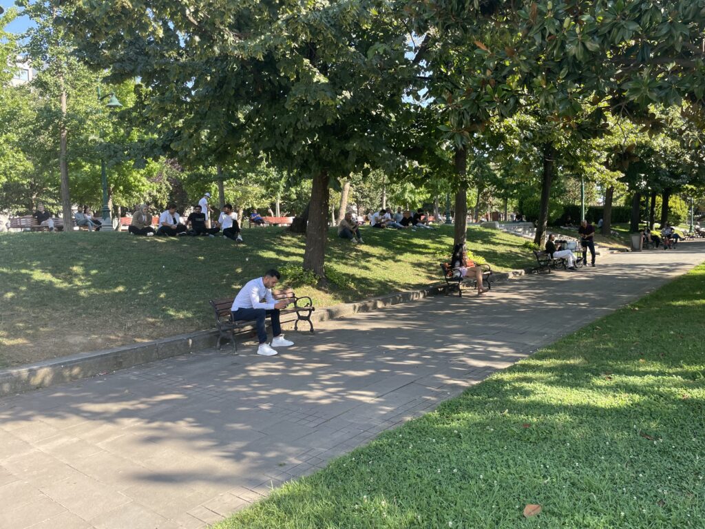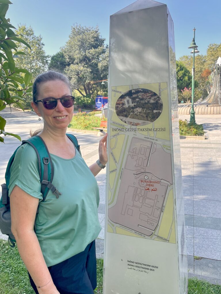 Wir gehen heute Richtung Bosborus. Zunächst streifen wir den Taksim-Platz, der nur wenigen Gehminuten von unserer Unterkunft liegt. Von dort aus gelangen wir zum nahe gelegenen Gezi-Park. Hier trinken wir einen Çay.