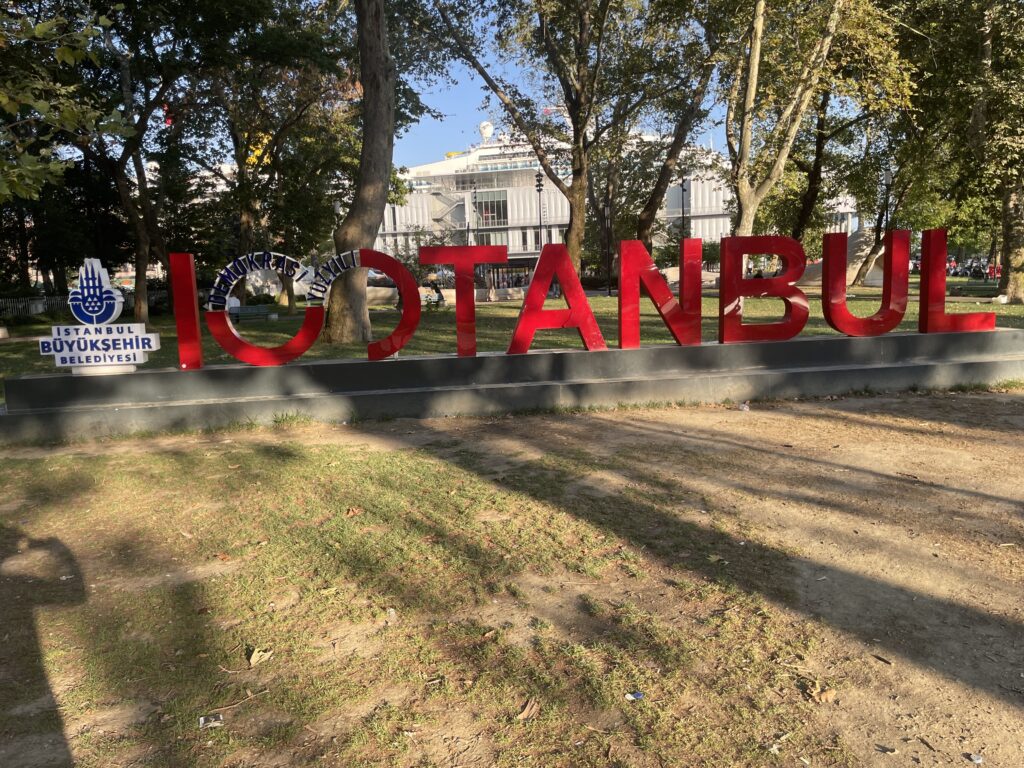 Auf dem weiteren Weg Richtung Galata-Brücke kommen wir an einem Istanbuler Schriftzug vorbei, wobei das liegenden S als Kunst im öffentlichen Raum für Demokratie, Gleichheit und Freiheit steht, #Istanbul
