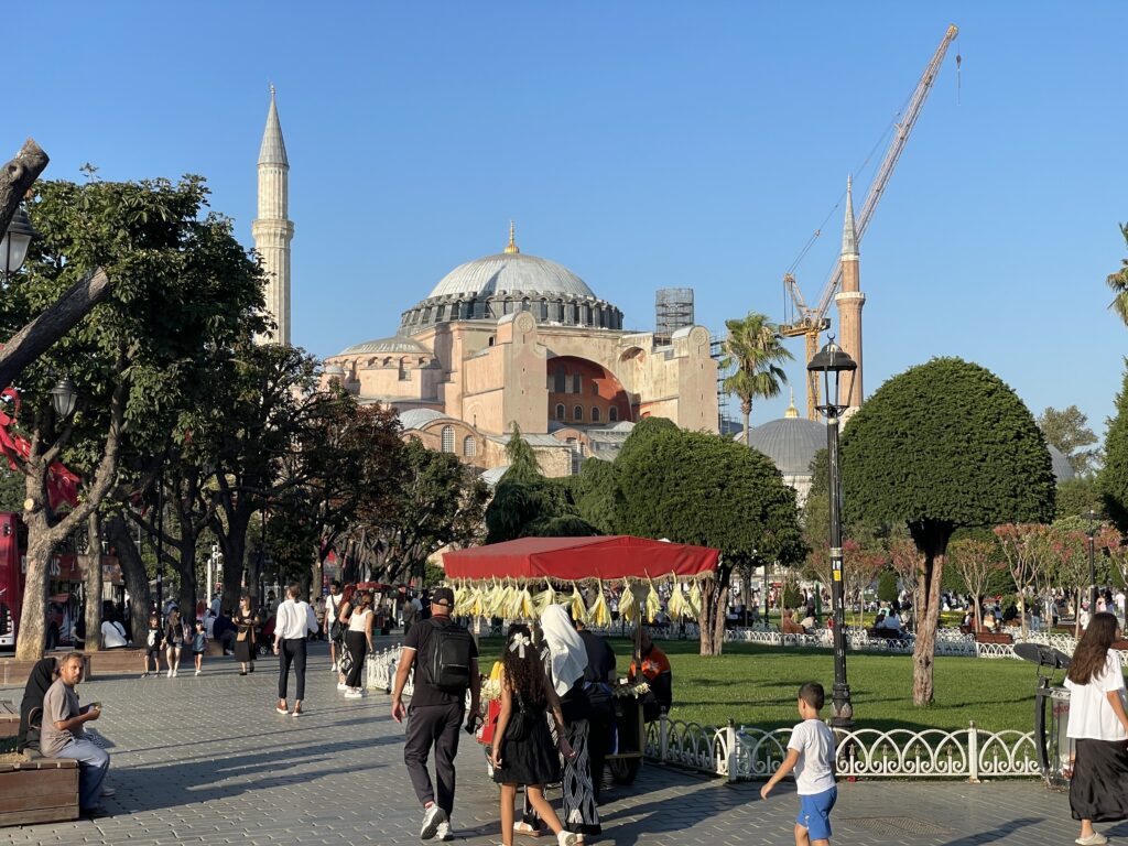 Da wir wissen, dass der Besuch der Hagia Sophia ca. 25€ Eintritt kostet, besichtigen wir diese nur von außen. Sie wirkt im Vergleich zur Blauen Moschee eher unscheinbar.