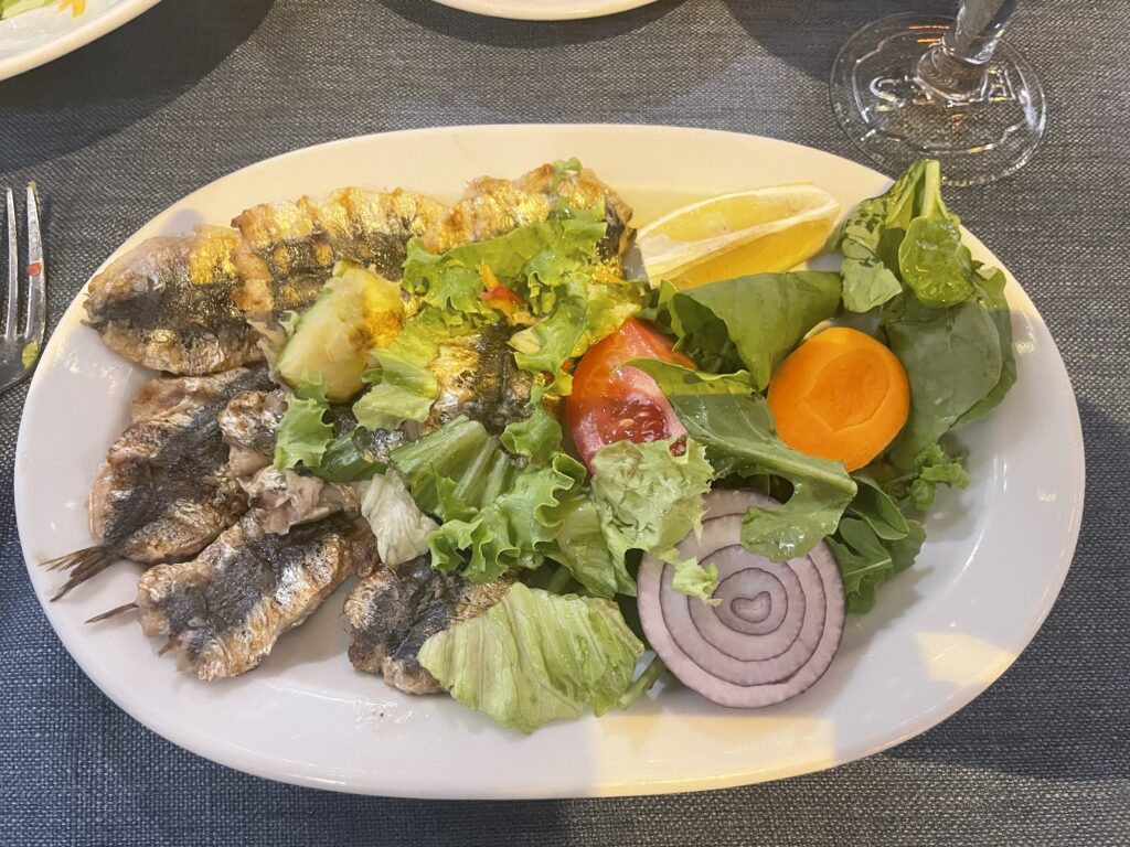 Anna ist nicht ganz zufrieden mit dem vegetarischem Angebot, allerdings zeigt sich der Kellner äußerst flexibel und versucht viel, um mit ihr eine akzeptable Lösung zu finden. Ich esse Fisch und bin zufrieden. Wir zahlen ca. 40€.