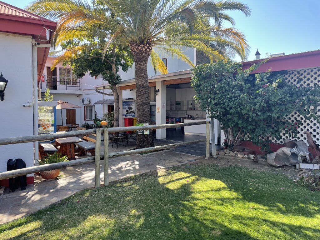 Die Unterkunftsmöglichkeiten sind sehr unterschiedlich: Vom einfachen Zelt über kleine Hütten (wie wir eine hatten) bis hin zu schönen Chalets, . Gebucht wird diese Lodge meist für Veranstaltungen, wie z.B. Hochzeiten. Die Atmosphäre war etwas konservativ, mit ein paar Sprüchen auf Afrikaans, und man merkte, dass der Besitzer und die MitarbeiterInnen recht religiös sind. Aber unsere Gastgeberin war sehr herzlich. Sie erzählte uns von ihrem Mann, der gestorben ist, und dass sie eigentlich nicht mehr arbeiten möchte.