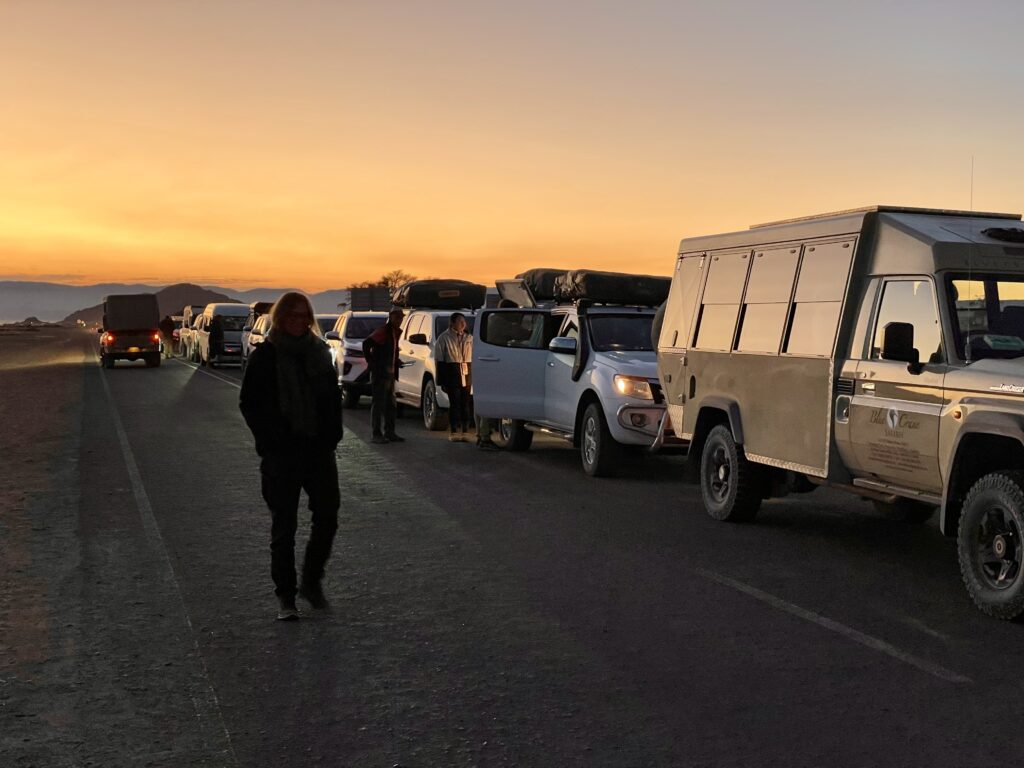 Nach zwei Tagen sind wir weitergefahren, zurück nach Namibia. Kurz vor der Grenze wurden wir aber noch von der Polizei angehalten. Ich hatte gerade zwei LKWs überholt und war wohl ein bisschen schneller als erlaubt – sie sagten, 104 statt 80 km/h.