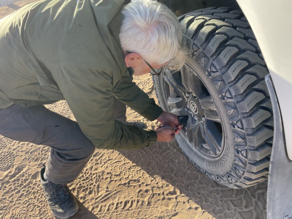 Lange Zeit konnte man überspülte Stellen umfahren, aber irgendwann kam doch die erste Senke, wo wir durchfahren mussten. Man braucht schon ziemlichen Mut und Zuversicht, um sich zu trauen, tatsächlich durchzufahren. Zuerst checkten wir, ob es Reifenspuren von anderen Autos gab, die uns die beste Durchquerungsstelle anzeigten. Später haben wir Leute kennengelernt, die uns erzählt haben, dass der Mann barfuß in eine überflutete Senke gegangen ist, um die Tiefe zu überprüfen. Na, das haben wir nicht gemacht, sondern wir fuhren einfach hindurch, es klappte erstaunlich gut.
