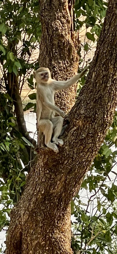 Am Nachmittag sind wir den „Sambesi Drive“ gefahren, ein kleiner Loop am Sambesi, den man selbstständig mit dem Auto fahren kann, fast wie ein Game Drive. Man sieht die Hinterlassenschaften von Elefanten und verschiedener Antilopenarten. Die Hauptattraktion ist ein Baum, der als der älteste Baobab-Tree in Zimbabwe, vielleicht auch in Afrika gilt, ca. 1200 Jahre alt , was man mit der Radiocarbon-Methode herausgefunden hat.