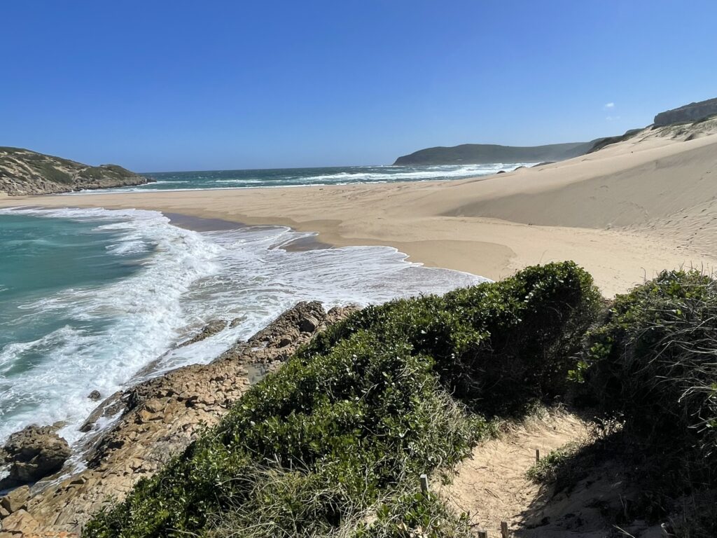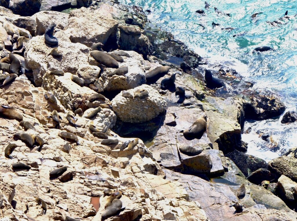 B: Ein besonderer Aussichtspunkt im Nationalpark war der sogenannte Dolphin Point, ein Ort, an dem die Chancen besonders hoch sein sollen, Delfine zu sehen. An diesem Tag hatte ich dort allerdings kein Glück – unsere Delfinbegegnung sollte erst später auf der Reise kommen.