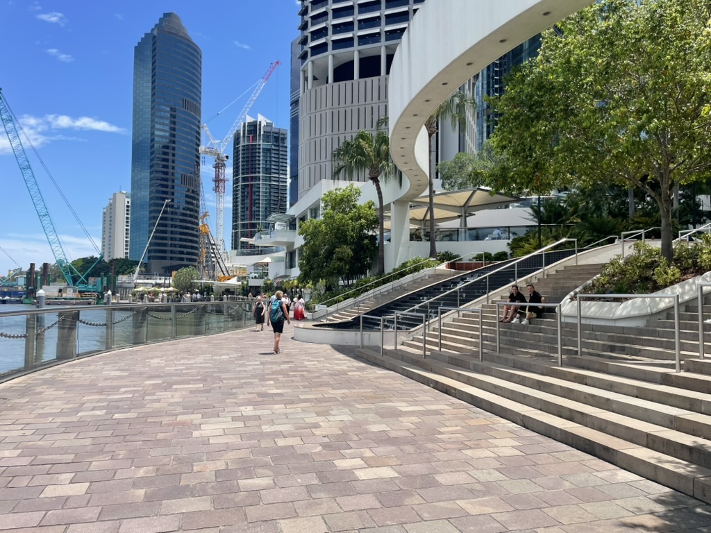 Mitten durch die Stadt fließt der Brisbane River – und er ist von vielen Stellen aus schnell erreichbar. Meist läuft man nur etwa zehn Minuten bis ans Wasser.