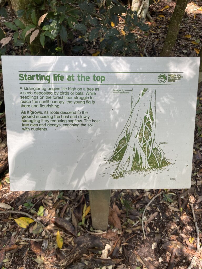 Am nächsten Morgen fuhren wir in den Noosa National Park und machten dort zwei kurze Wanderungen. Die erste führte über einen Boardwalk durch den Regenwald. Obwohl der Weg nicht lang war, vermittelte er sofort einen faszinierenden Eindruck: riesige Bäume, gewaltige Palmen und große Farne – alles wirkte fast überwältigend.