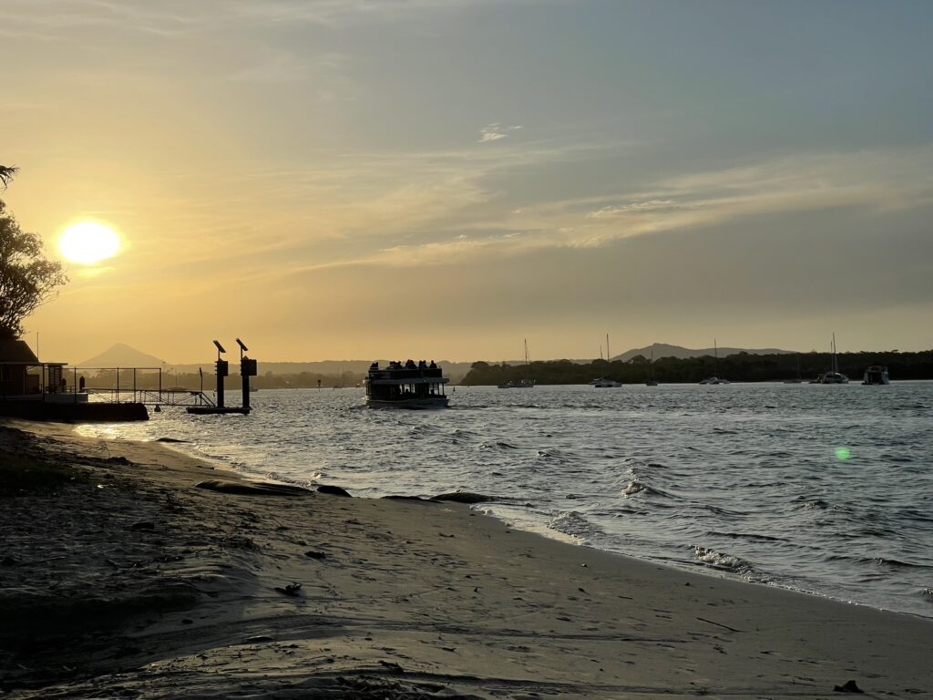 Nach der Ankunft und der langen Fahrt haben wir erst einmal etwas gegessen und sehr schnell unsere Nachbarn kennengelernt. Es handelte sich um ein Paar, das sein Leben so eingerichtet hat, dass es jeweils ein halbes Jahr in Australien und ein halbes Jahr in den Niederlanden verbringt, woher sie ursprünglich kommen. Sie wirkten fast wie echte Australier, waren extrem gut ausgerüstet und für alles vorbereitet. Der Campingplatz selbst war schön, allerdings fiel uns die Gemeinschaftsküche negativ auf. Sie war leider ziemlich schmutzig: Viele hatten dort gekocht, ohne ordentlich abzuspülen, Essensreste lagen überall. Auch die Grillstationen machten keinen besonders gepflegten Eindruck. Das war das erste Mal auf unserer Reise, dass wir wirklich dachten: Das kann doch nicht wahr sein. Umso erstaunlicher, weil alle bisherigen Campingplätze sehr viel Wert auf Sauberkeit gelegt hatten. Ansonsten war der Platz sehr chillig und auch die Umgebung von Noosa ist wirklich toll. Abends begann es zu regnen. Zwei Stundenlang saßen wir dabei im Camper, hängten unsere Lichterkette auf und öffneten noch ein kleines Fläschchen Wein – ein sehr gemütlicher Abend.